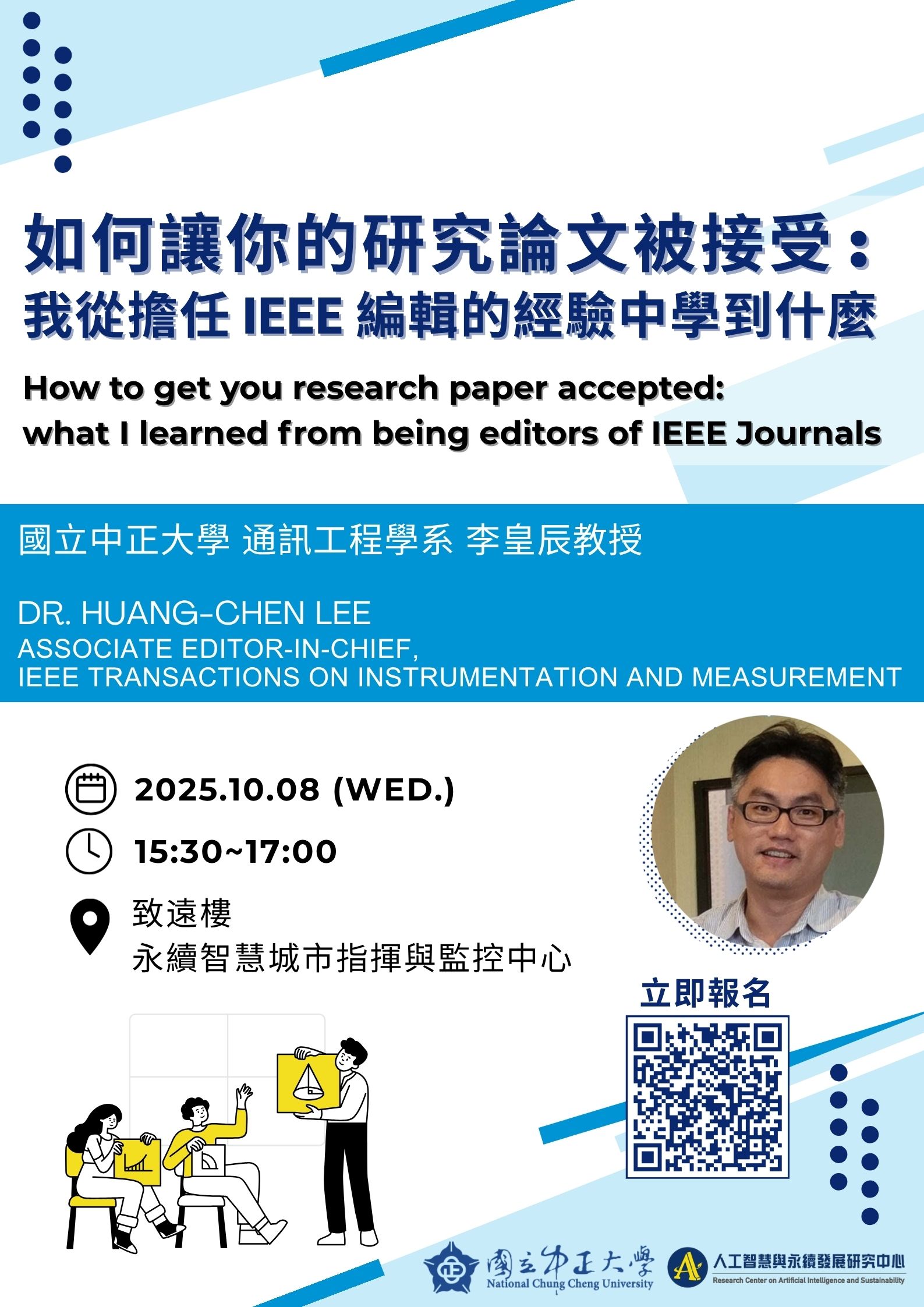 - 講題:如何讓你的研究論文被接受:我從擔任 IEEE 編輯的經驗中學到什麼